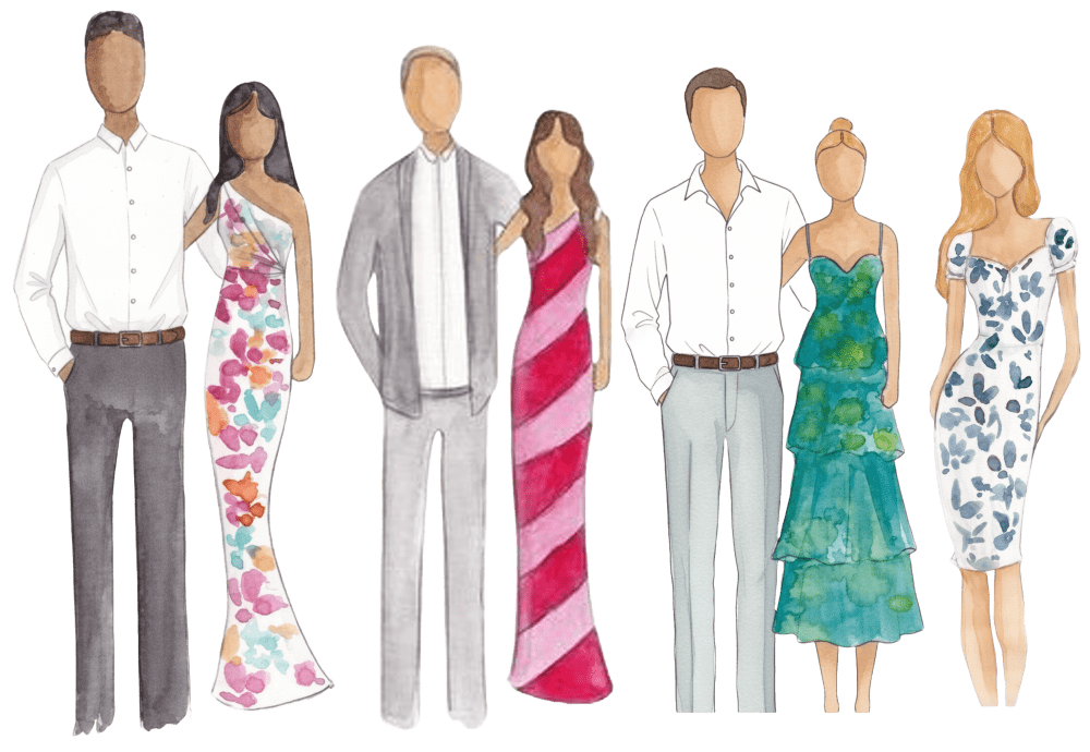 Ah, um lembrete importante para as convidadas: Branco é só para a noiva! Pedimos a gentileza de evitarem o branco, off-white e tons muito claros que possam ser confundidos com o branco em fotos.